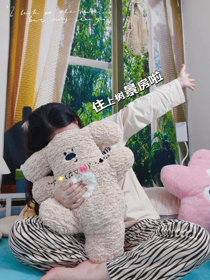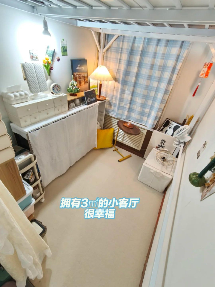 ②房子采光好,上铺就有超大的落地窗,将窗帘、床帘拉开,阳光就可以充盈整个房子,博主还在房间安装很多大灯泡,亮堂堂的,看着就舒服。